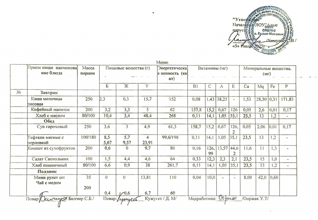 ЛОК-25, Меню в лагере, Пришкольный лагерь "Алые паруса-2025" Меню на 5 июля 05.07.2025 / Related posts: Меню на 1 июля Меню на 2 июля Меню на 3 июля Меню на 4 июля