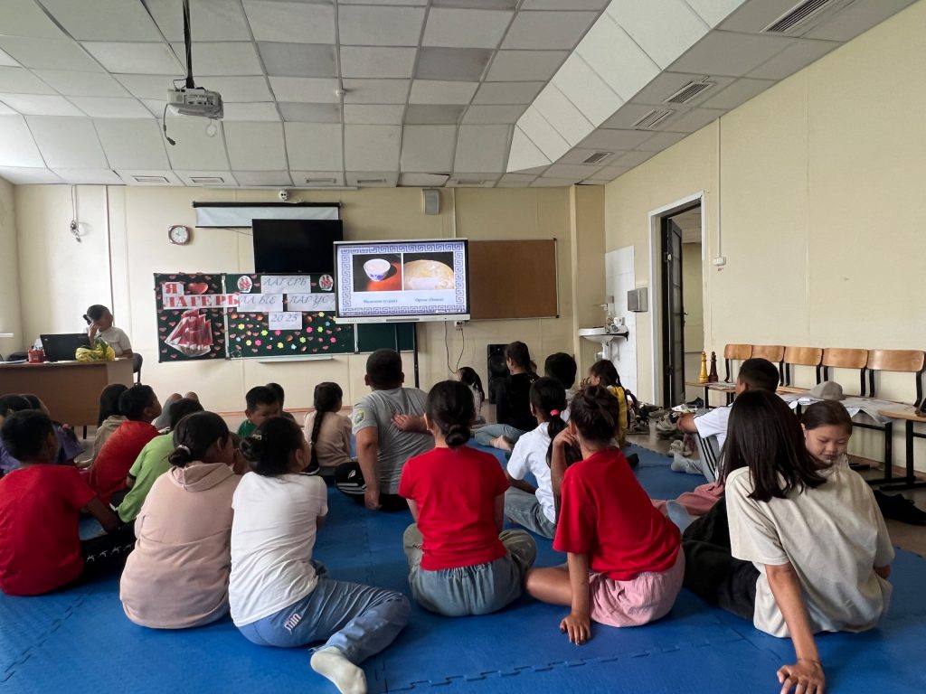 После вкусного завтрака ребята посмотрели увлекательный видеоролик «Национальная кухня тувинцев», в ходе которого дети познакомились с национальными блюдами «быштак», «ореме», «саржаг», «хойтпак», «ааржы».