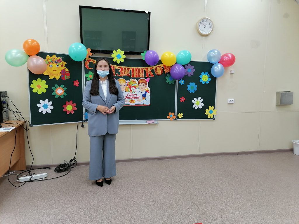 учителя математики Донгак Чаяна Эрес-ооловну, учителя английского языка Сержи Айдысмаа Шомун-ооловну,учителя начальных классов Сарыглар Сюзанна Владиславовну, учителя физкультуры Ооржак Айдын Алексеевича.После чествования учащиесявручили букеты новым учителям. Почетное право дать первый звонок 2021-2022 учебного года было предоставлено ученице первого классаОндар Мелани и выпускнику одиннадцатого класса Саая Айран. По окончании торжественной линейки учащиеся и классные руководители прошли в свои аудитории где провели классные часы