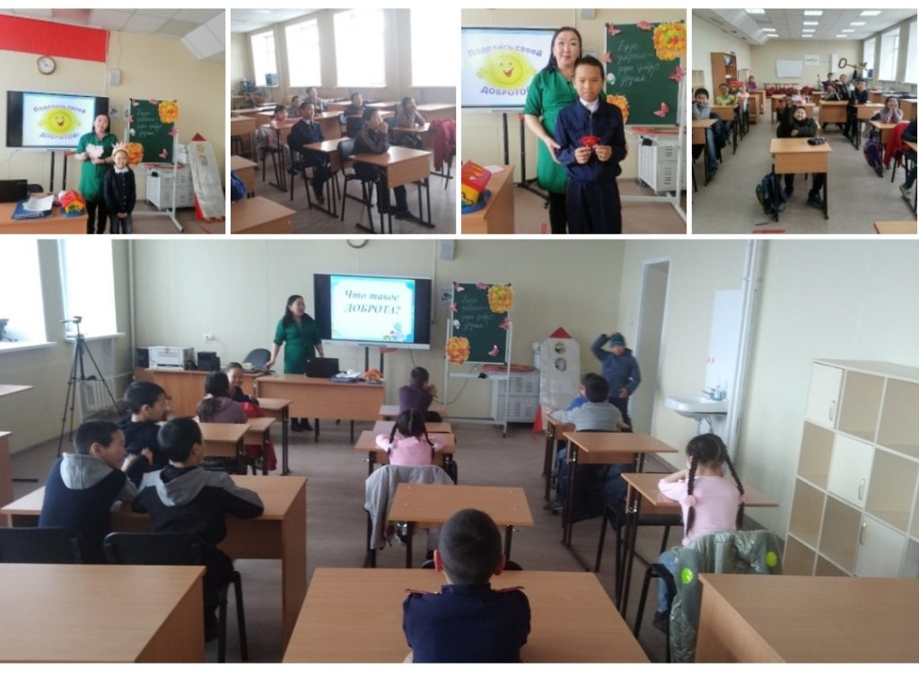 С целью довести до сознания детей, что доброта – одна из лучших качеств человека, расширить знания школьников о доброте, ее роли в жизни каждого, мотивировать детей на добрые поступки, способствовать расширению кругозора детей, 30 марта, заместителем директора по воспитательной работе Кужугет А. Н. проведено занятие для учащихся 1-5 классов «Будь добрым з дари добро другим!»