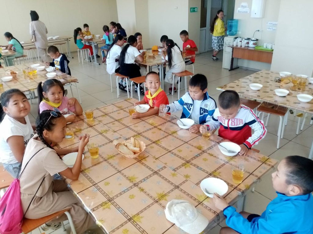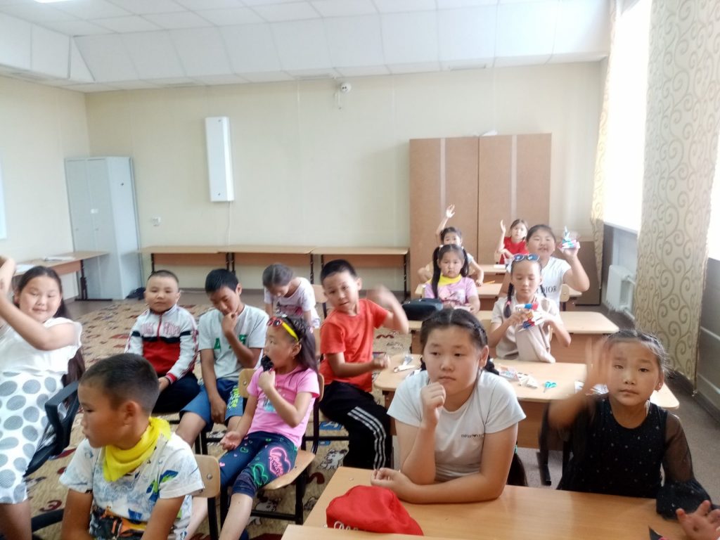 День начался с активной зарядки с танцевальными движениями. На утренней линейке был озвучен план работы дня, всех ребят обрадовала новость об экскурсии в кинотеатр для просмотра мультфильма.