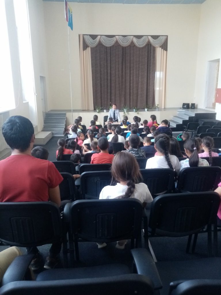Дальше по плану состоялась встреча с сотрудниками ОГИБДД МВД РФ БАРУН-ХЕМЧИКСКИЙ инспектором отделения пропаганды Безопасного Дорожного Движения МО МВД РВ БАРУН-ХЕМЧИКСКИЙ майором полиции О. К. Сарыглар.