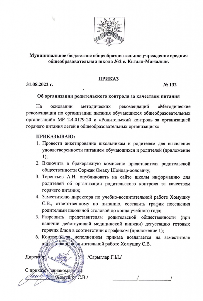 Горячее питание, Нормативно-правовые акты Приказ школы «об организации родительского контроля за качеством питания» 01.09.2022 / Related posts: Количество детей, получающих горячее питание в 2021-22 учебном году График дежурства учителей в столовой в 2022 году Это интересно! Анкета родителей по горячему питанию