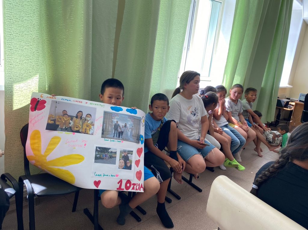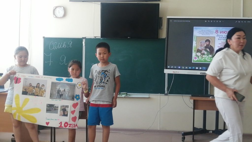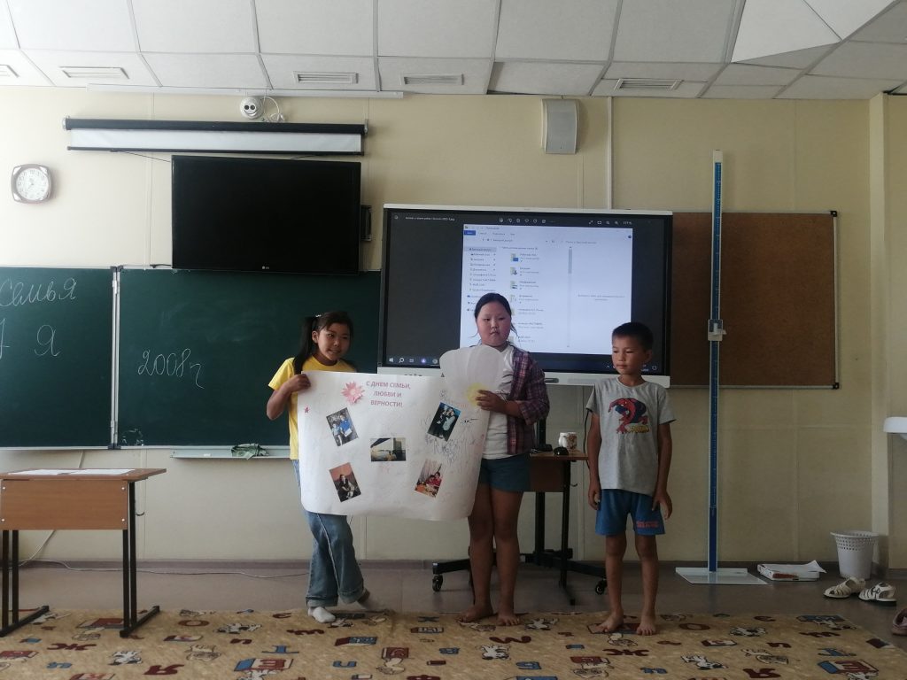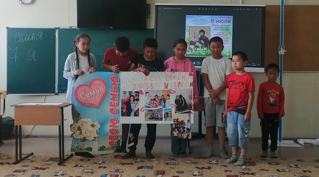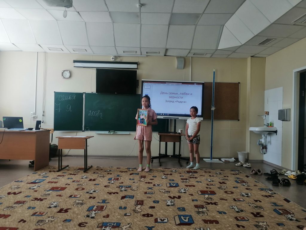 Все с большим восторгом смогли поучаствовать в разговоре на тему: «Семья – это значит мы вместе», рассказывая самое хорошее о своей семье. Провели викторину, конкурс загадок, рпзминку «Семь Я», где ребята отгадывали загадки, вспомнили пословицы, поучаствовали в конкурсе «Кто есть кто?». Потом был организован просмотр мультфильмов. В течение дня провели множество игр на сплочение детского коллектива и укрепление дружеских отношений. Было очень весело, и победила, конечно же, дружба! Также ребята участвовали в музыкальном развлечении, посвященное Дню Любви, Семьи и Верности «Когда семья вместе, так и душа на месте»