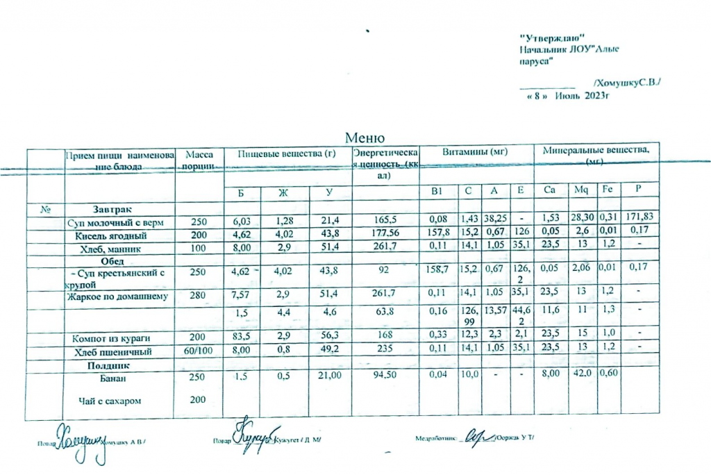 Пришкольный лагерь "Алые паруса"-2023 Меню пришкольного лагеря на 8 июля 08.07.2023 / No related posts.