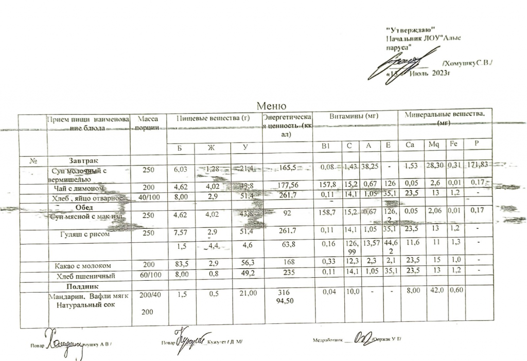 Пришкольный лагерь "Алые паруса"-2023 Меню пришкольного лагеря на 15 июля 15.07.2023 / No related posts.